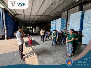 Nhằm đảm bảo môi trường làm việc an toàn và chủ động ứng phó với các tình huống khẩn cấp, VSK Group đã tổ chức định kỳ chương trình tập huấn Phòng cháy chữa cháy cho nhân viên tại nhà máy Viesky.