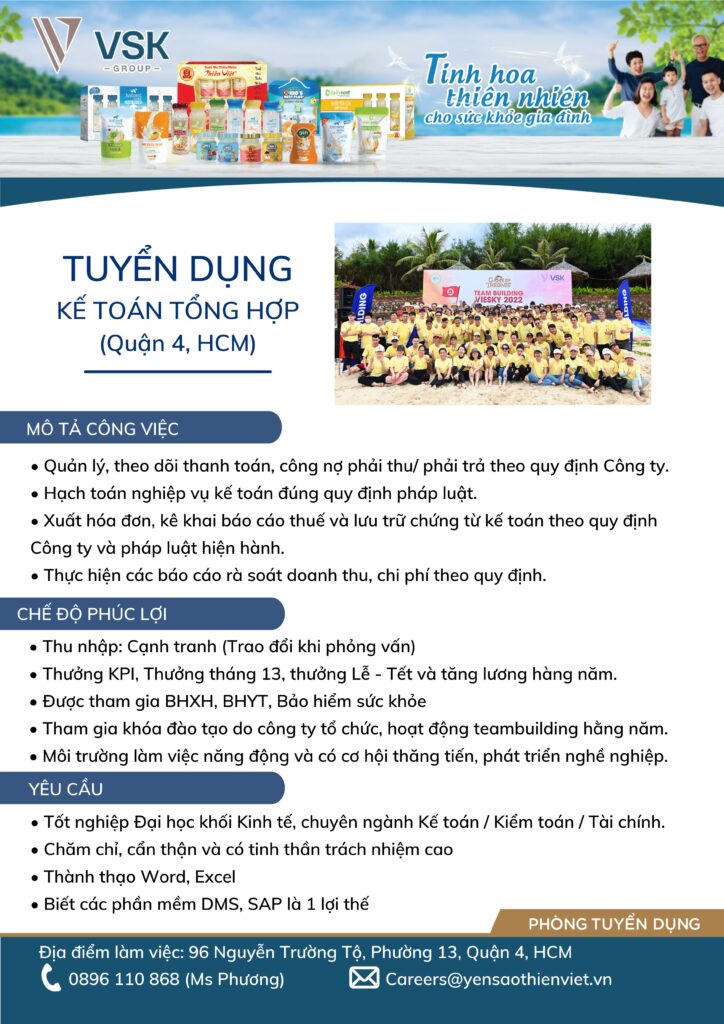 [Quận 4, Hồ Chí Minh] Kế toán tổng hợp